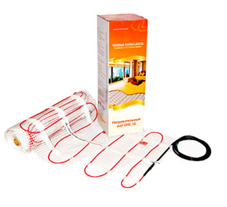Источником тепла служит нагревательный кабель – мат, это готовая конструкция с уложенным на полимерной сетке шириной 50 см кабелем, закрепленным с постоянным шагом, которая исключает процедуру крепления при укладке, что существенно упрощает монтаж. Данная конструкция разработана как для помещений, где уже выполнена цементно- песчаная(бетонная)стяжка, так и для тех помещений, где нет возможности ее сделать. Нагревательные маты устанавливаются под цементно-песчаную стяжку (толщина стяжки около 20 мм) или плиточный клей (толщина слоя плиточного клея 5-7 мм). Нагревательные маты могут быть установлены поверх старого плиточного покрытия. Маты не увеличивая строительную высоту пола и обеспечивает комфортный обогрев его поверхности до температуры 24 – 27 0С.